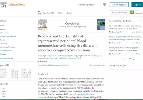 SCI期刊:《Cryobiology》研究論文題目:Recovery and functionality of cryopreserved peripheral blood mononuclear c