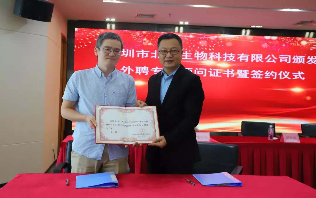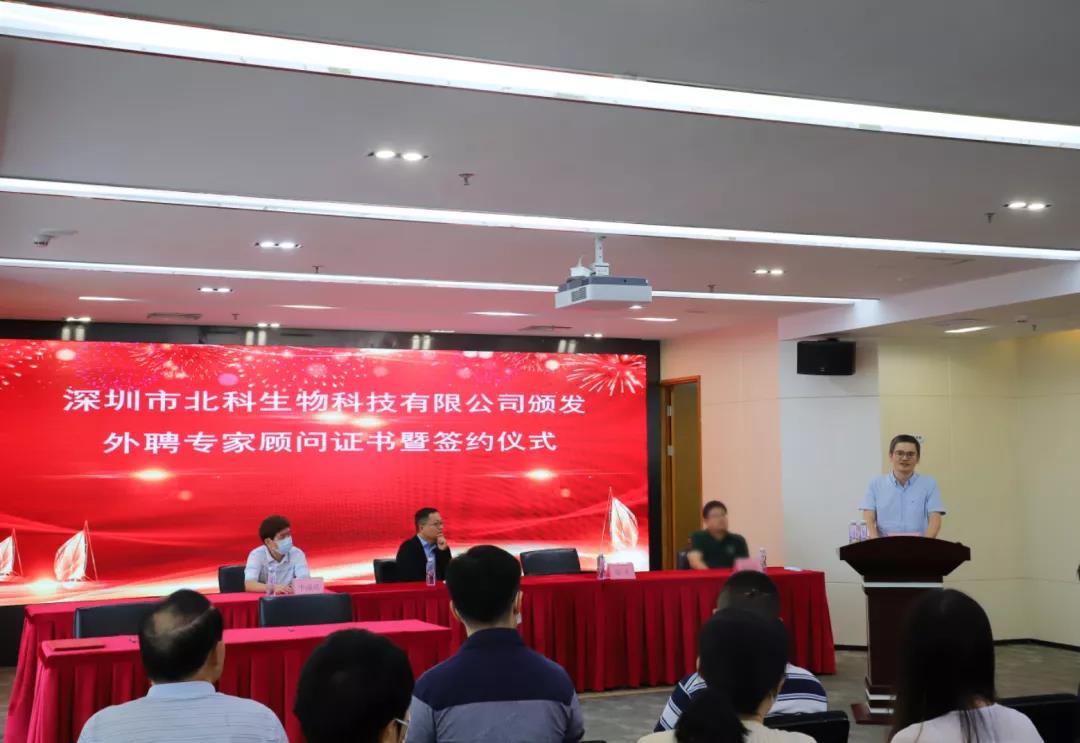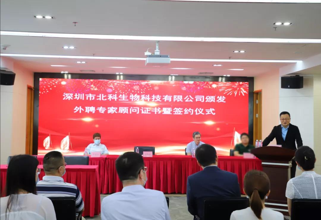 9月29日下午,為推動公司實現高質量的發展,提升公司的核心競爭力,深圳市北科生物科技有限公司舉行了頒發外聘專家顧問證書暨合作項目簽約儀式。北科生物董事長胡雋源博士與蔣衛教授簽訂《合作項目意向書》并頒發外聘專家顧問證書。蔣衛教授是武漢大學醫學研究院教授、中南醫院特聘研究員,在干細胞分化、表觀遺傳學調控、長非編碼RNA等領域有著深入研究,已在國際刊物發表論文30多篇,被SCI引用2000余次。